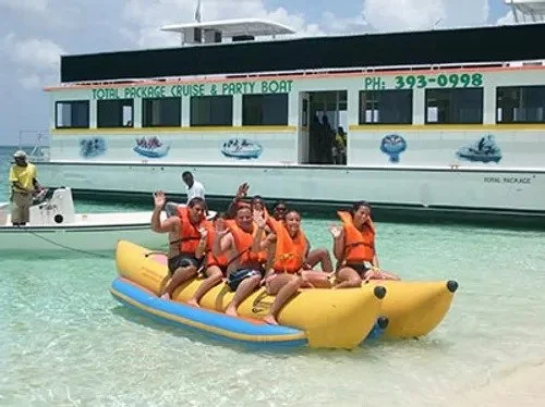 Our Total Package is the perfect answer for those bubbling with energy who want non-stop action. The fun begins cruising picturesque Nassau Harbour aboard our 72-foot catamaran 'Total Package' before heading to a secluded private beach on Athol Island. The action heats up as you jump from Jetskiing to Parasailing to Banana Boat Riding to Snorkeling. A savory Bahamian picnic lunch is included to keep up your energy level.
