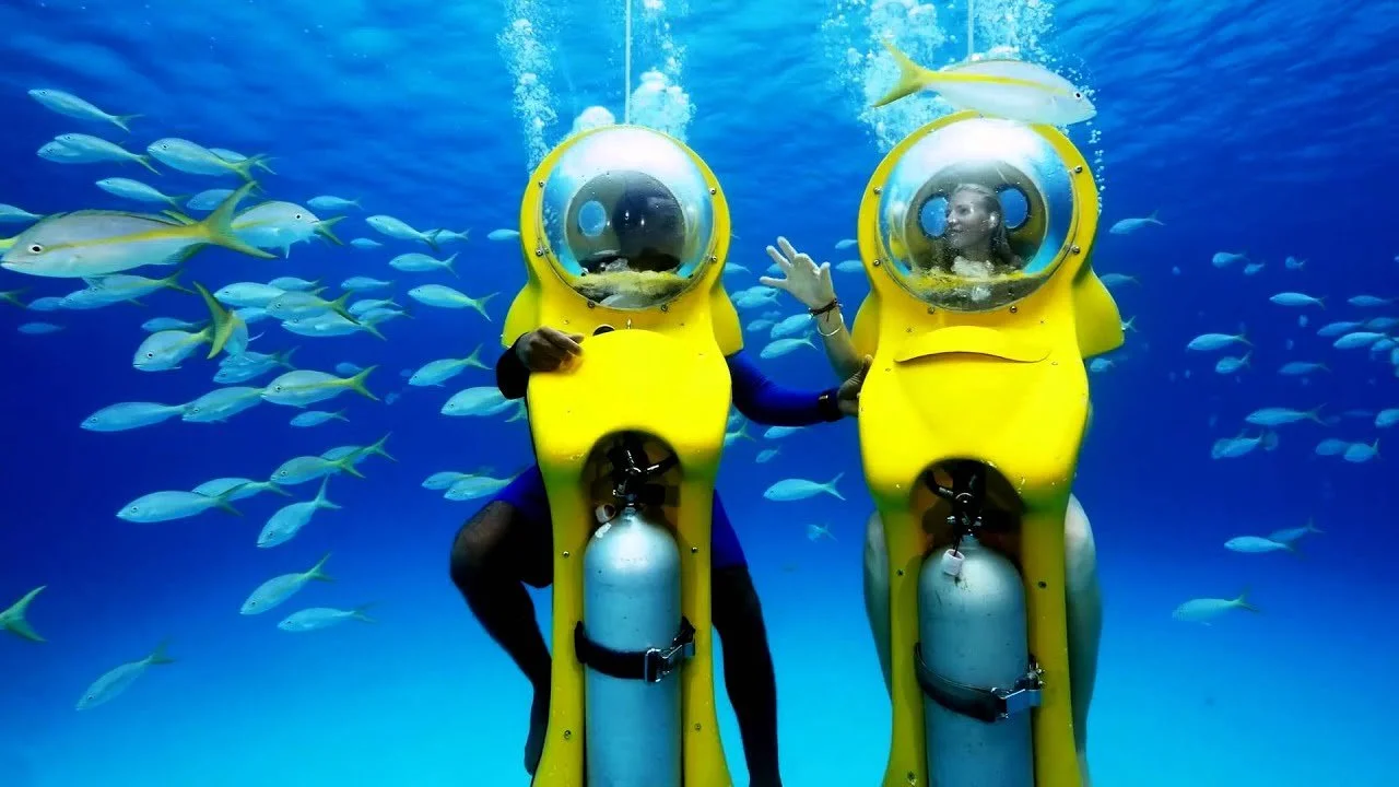 Get ready for a unique and captivating experience with a Bubble Watcher ride in the Bahamas. Enjoy the thrill of gliding smoothly underwater in a clear bubble, marveling at the vibrant marine life and stunning coral reefs without getting wet, creating a truly unforgettable and immersive adventure.